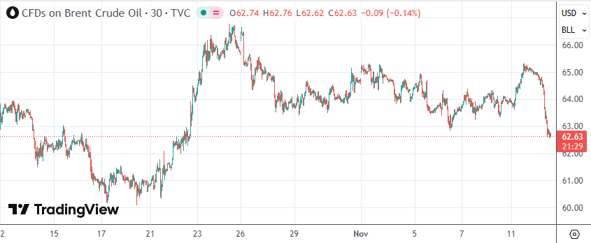受该消息影响,布伦特原油期货主连价格日内跌近4%,最低至每桶62.57美元,为10月23日以来的最低水平;美国原油期货主连价格则跌超4%,最低报每桶58.30美元。