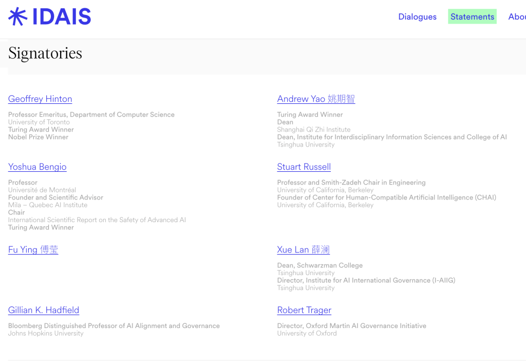 此次对话是“AI安全国际对话”(International Dialogues on AI Safety - IDAIS)系列的一部分”。作为本次共识发起方之一,图灵奖得主、上海期智研究院的院长姚期智当日表示,“我越来越相信,人类终将找到解决方案。”