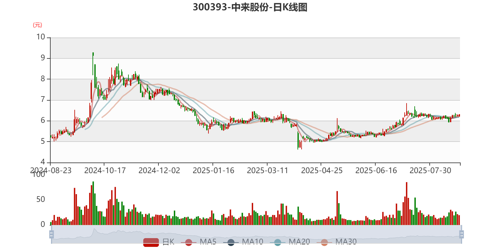 中证智能财讯中来股份(300393)8月23日披露2025年半年度报告。2025年上半年,公司实现营业总收入33.04亿元,同比增长7.25%;归母净利润亏损1.69亿元,上年同期亏损3.06亿元;扣非净利润亏损1.9亿元,上年同期亏损3.37亿元;经营活动产生的现金流量净额为-4.47亿元,上年同期为-6.21亿元;报告期内,中来股份基本每股收益为-0.15元,加权平均净资产收益率为-5.15%。