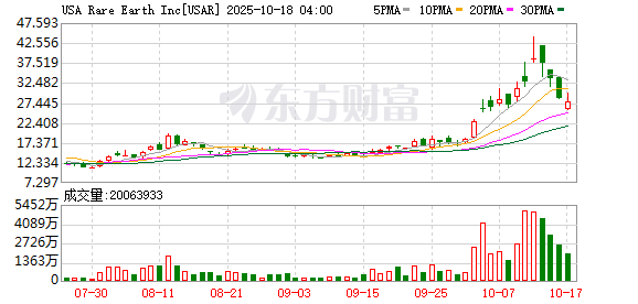 美东时间周五,美股开盘后,相关个股股价继续走低,截至收盘,United States Antimony暴跌超10%,Lithium Americas大跌超8%,USA Rare Earth大跌近3%,Energy Fuels大跌2.9%。