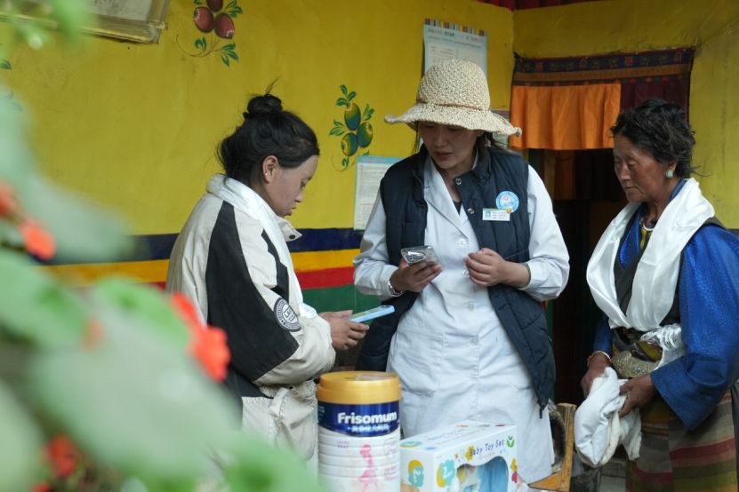 菲仕兰探访西藏日喀则困境孕产妇并捐赠美素佳儿妈妈奶粉。企业供图