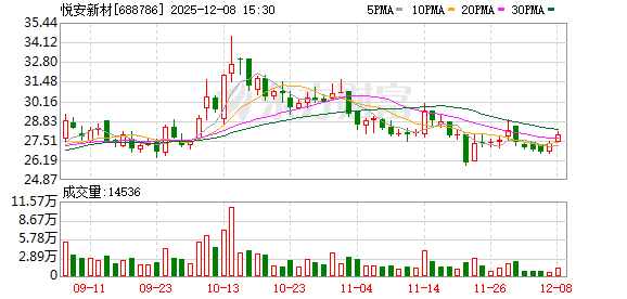 证券时报·数据宝统计显示,悦安新材今日收盘价为27.90元,上涨2.01%,日换手率为1.01%,成交额为4042.95万元,全天主力资金净流入181.50万元,近5日该股累计上涨1.79%,近5日资金合计净流出749.33万元。